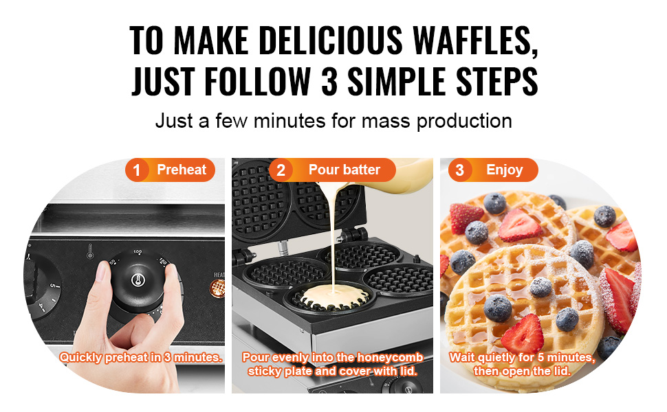 - Versatilidade de Uso: Ideal tanto para uso doméstico quanto comercial, em cozinhas, festas, restaurantes, lojas de sobremesas ou estandes de alimentos. É a escolha perfeita para o seu negócio de waffles.